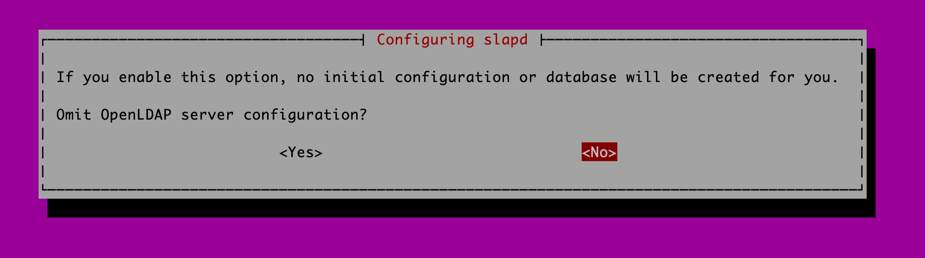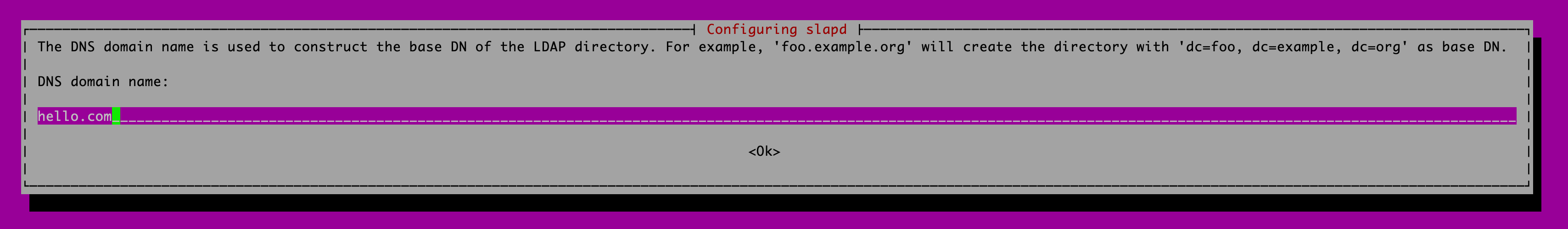$ sudo apt-get -y install slapd ldap-utils