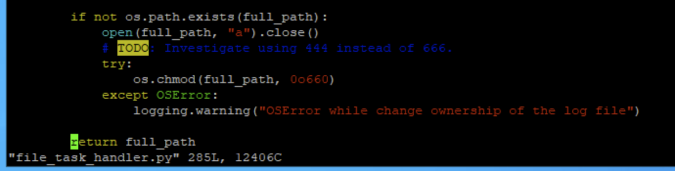 If the airflow dag logs permission becomes 777 by default, please modify the below file to restrict it. #grep -7 chmod /data/airflow/airflow/lib/python3.7/site-packages/airflow/utils/log/file_task_…