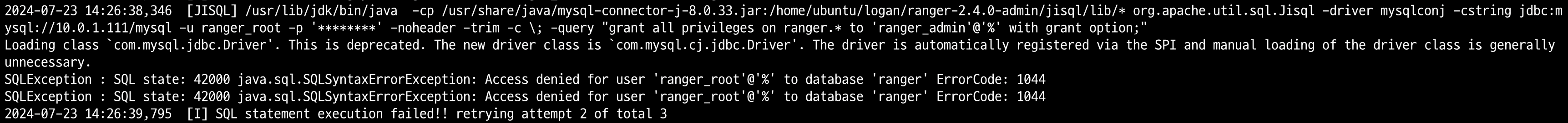 아파치 레인저를 설치 하는 중에 setup.sh 를 실행하면 다음과 같은 쿼리를 실행하고, 오류가 발생하였습니다.
