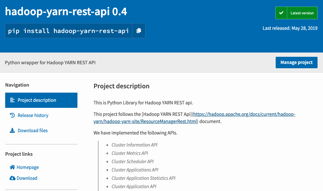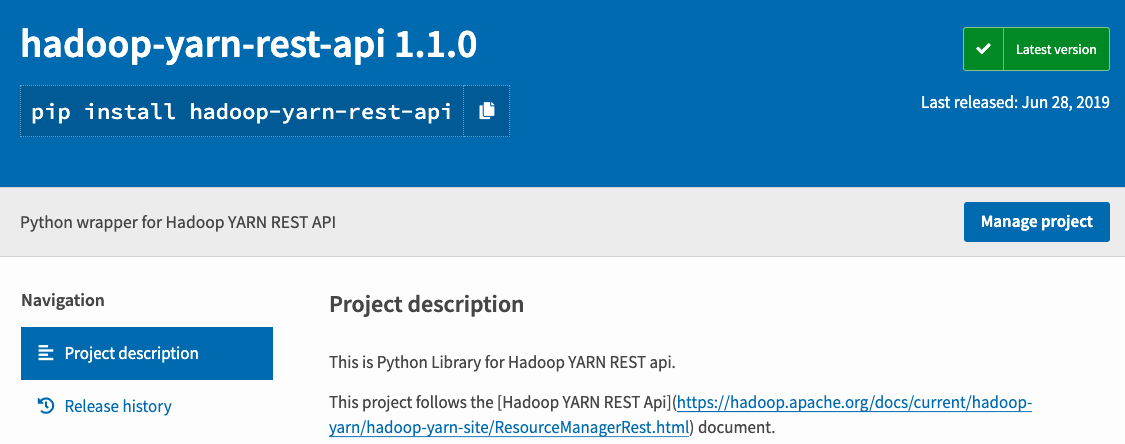 하둡 YARN의 REST API를 이용할 수 있는 python2용 라이브러리를 소개합니다.