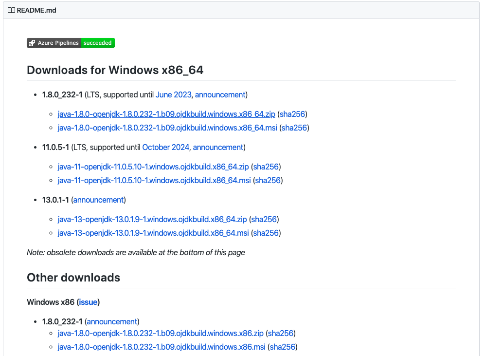 - 깃허브에서 빌드된 자바 다운로드(https://github.com/ojdkbuild/ojdkbuild) 합니다.