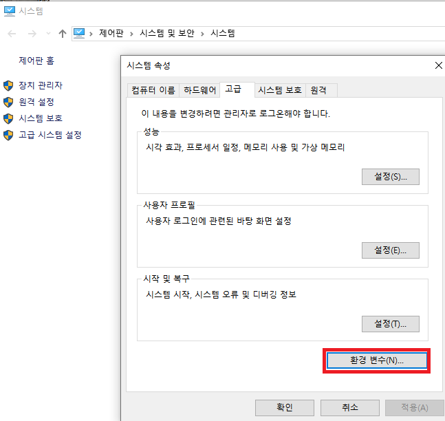 이럴 때는 "제어판 -> 시스템 및 보안 -> 시스템 -> 고급시스템 설정 -> 환경 변수" 에 JAVA_HOME을 추가해 주면 됩니다.